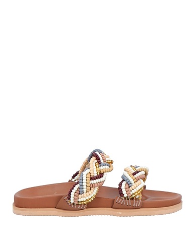 tessuto spalmato, perline, multicolore, interno in pelle, punta tonda, senza tacco, suola in gomma, contiene parti non tessili di origine animale, sandali, calzata ridotta