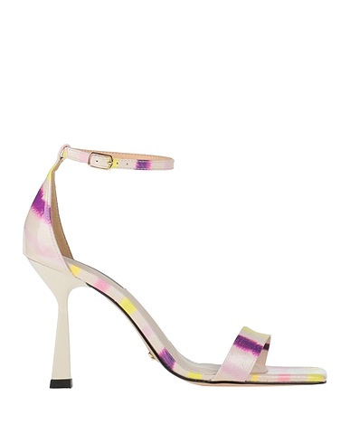 tessuto spalmato, effetto verniciato, senza applicazioni, multicolore, interno foderato, cinturino alla caviglia, punta quadrata, tacco a rocchetto, suola in gomma con incisioni, sandali ankle strap