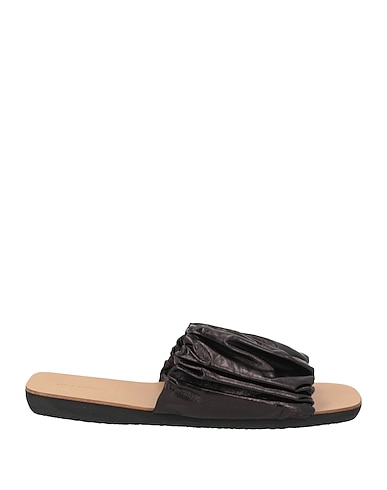 pelle, senza applicazioni, tinta unita, interno in pelle, punta tonda, senza tacco, suola in gomma, contiene parti non tessili di origine animale, sandali una fascia