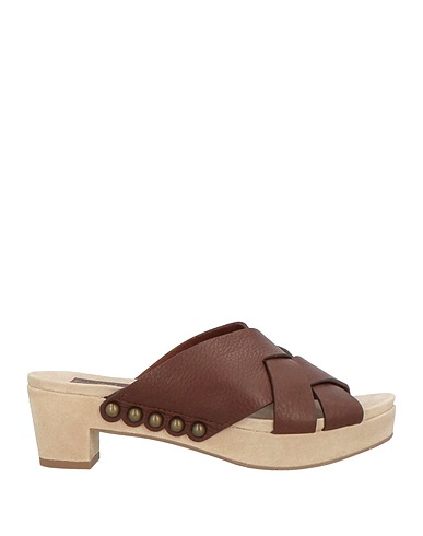 pelle martellata, senza applicazioni, tinta unita, interno in pelle, punta tonda, tacco squadrato, suola in gomma con incisioni, contiene parti non tessili di origine animale, sandali