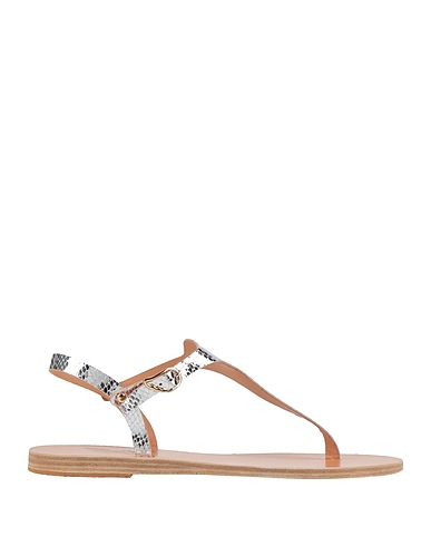 sandali infradito, pelle, metallizzato, tinta unita, senza applicazioni, cinturino alla caviglia con fibbia, punta tonda, senza tacco, suola in cuoio, interno in pelle, contiene parti non tessili di origine animale