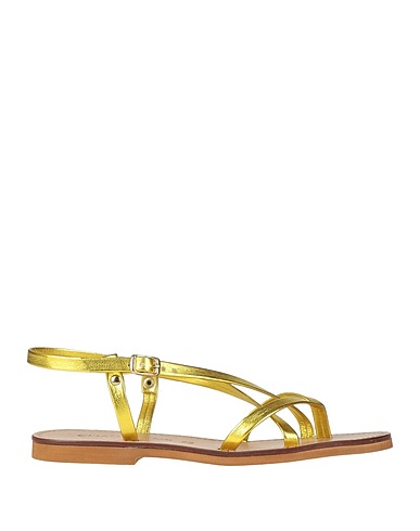 sandali infradito, pelle, metallizzato, tinta unita, senza applicazioni, cinturino alla caviglia con fibbia, punta tonda, senza tacco, suola in gomma, interno in pelle, contiene parti non tessili di origine animale