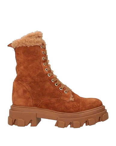 pelle scamosciata, senza applicazioni, tinta unita, interno in pelo sintetico, chiusura con lacci, punta tonda, tacco squadrato, suola in gomma con incisioni, contiene parti non tessili di origine animale, chunky boots, calzata ampia