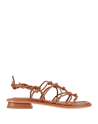 sandali, pelle, tinta unita, senza applicazioni, interno in pelle, allacciatura alla caviglia, punta tonda, senza tacco, suola in cuoio, contiene parti non tessili di origine animale
