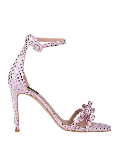 tela, lamè, metallizzato, fiocco, bicolore, interno in gomma, cinturino alla caviglia con fibbia, punta tonda, tacco a stiletto, tacco rivestito, suola in cuoio, contiene parti non tessili di origine animale, sandali ankle strap