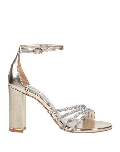 sandali ankle strap, pelle, metallizzato, tinta unita con applicazioni, cristalli, interno in pelle, cinturino alla caviglia con fibbia, punta tonda, tacco squadrato, suola in gomma, contiene parti non tessili di origine animale