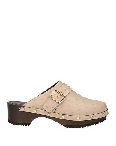 pelle, senza applicazioni, stampa struzzo, tinta unita, interno sfoderato, chiusura con fibbia, punta tonda, tacco squadrato, suola in gomma con incisioni, contiene parti non tessili di origine animale, zoccoli