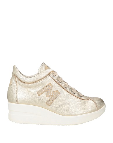 sneakers basse, pelle martellata, metallizzato, tinta unita, brand logo, cristalli, chiusura con lacci, punta tonda, zeppa, suola in gomma, interno in pelle, contiene parti non tessili di origine animale