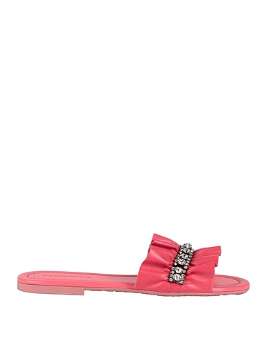 pelle, ruches, cristalli, tinta unita con applicazioni, interno in pelle, punta tonda, senza tacco, suola in gomma, contiene parti non tessili di origine animale, sandali una fascia