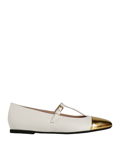 ballerine mary jane, pelle, metallizzato, brand logo, bicolore, interno in pelle, chiusura con fibbia, punta tonda, senza tacco, suola in gomma, contiene parti non tessili di origine animale, calzata ridotta
