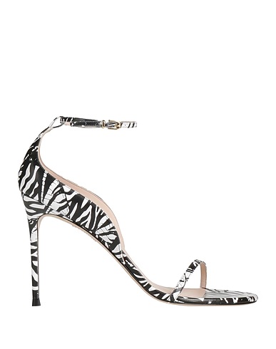 sandali ankle strap, pelle, senza applicazioni, fantasia zebrata, interno in pelle, cinturino alla caviglia con fibbia, punta tonda, tacco a spillo, suola in cuoio, contiene parti non tessili di origine animale