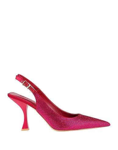decolleté slingback, raso, cristalli, iridescente, interno foderato, punta stretta, tacco a rocchetto, suola in gomma