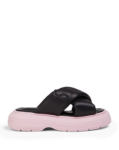 sandali, tessuto tecnico, logo ricamato, tinta unita con applicazioni, interno in pelle, punta tonda, senza tacco, suola in gomma con incisioni, contiene parti non tessili di origine animale