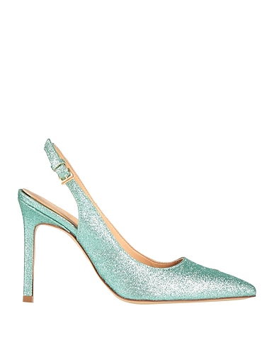 decolleté slingback, tessuto spalmato, tinta unita, glitterato, interno in pelle, chiusura con fibbia, punta stretta, tacco a stiletto, suola in cuoio, contiene parti non tessili di origine animale, calzata ampia