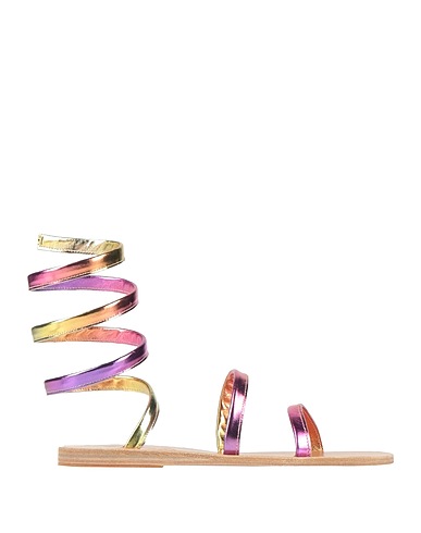 sandali, pelle, metallizzato, iridescente, senza applicazioni, interno in pelle, allacciatura alla caviglia, punta tonda, senza tacco, suola in cuoio e gomma, contiene parti non tessili di origine animale