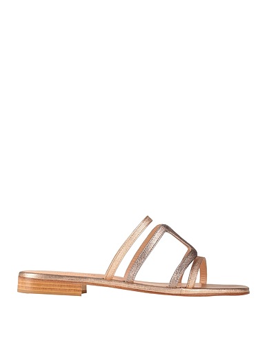 sandali, pelle, metallizzato, bicolore, senza applicazioni, interno in pelle, punta quadrata, senza tacco, suola in cuoio e gomma, contiene parti non tessili di origine animale