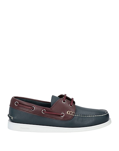 boat shoes, pelle, bicolore, senza applicazioni, interno in pelle, chiusura con lacci, punta tonda, senza tacco, suola in gomma con incisioni, contiene parti non tessili di origine animale