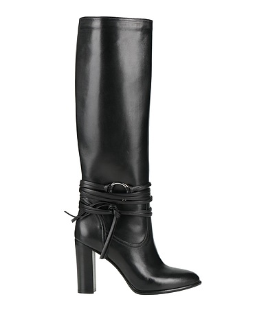 stivali, pelle, tinta unita con applicazioni, applicazione removibile, interno in pelle, punta tonda, tacco squadrato, suola in cuoio e gomma, contiene parti non tessili di origine animale, calzata ampia