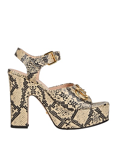 sandali ankle strap, pelle, stampa serpente, decorato, interno in pelle, chiusura con fibbia, punta tonda, tacco squadrato, tacco rivestito, suola in cuoio, contiene parti non tessili di origine animale