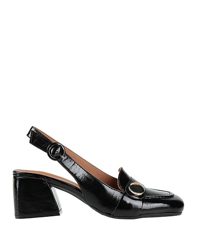 decolleté slingback, pelle verniciata, tinta unita con applicazioni, decorato, interno in pelle, chiusura con fibbia, punta quadrata, tacco squadrato, tacco rivestito, suola in gomma, contiene parti non tessili di origine animale