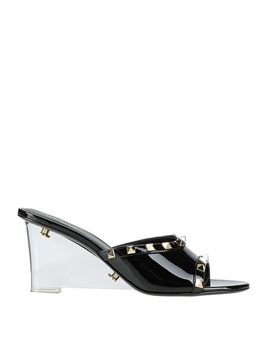 sandali una fascia, pelle verniciata, tinta unita con applicazioni, borchie, interno in pelle, punta tonda, tacco a zeppa, suola in cuoio, contiene parti non tessili di origine animale