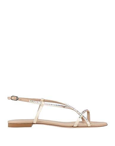 sandali infradito, raso, tinta unita con applicazioni, cristalli, cinturino alla caviglia con fibbia, punta tonda, senza tacco, suola in cuoio e gomma, interno in pelle, contiene parti non tessili di origine animale