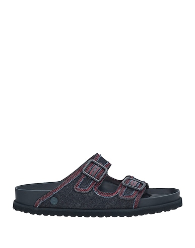 sandali tecnici, denim, tinta unita, brand logo, interno in pelle, chiusura con fibbia, punta tonda, senza tacco, suola in gomma, contiene parti non tessili di origine animale, plantare: narrow fit