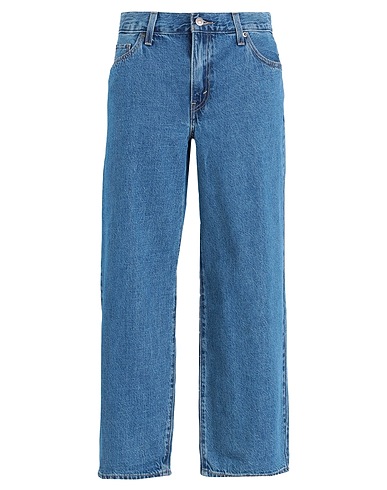 jeans gamba dritta, modello: baggy dad, denim, effetto delave, effetto consumato, tinta unita, brand logo, lavaggio medio, vita normale, vita con passanti, gamba ampia, regular fit, 1 bottone, chiusura con zip, cinque tasche, contiene parti non tessili di origine animale, questo brand veste piccolo