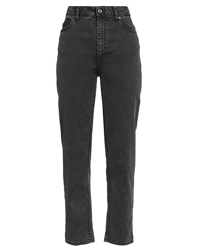 jeans mom, denim, effetto delave, brand logo, finiture in pelle, tinta unita, lavaggio colorato, vita alta, gamba affusolata, regular fit, chiusura con zip, 1 bottone, cinque tasche, elasticizzato, contiene parti non tessili di origine animale