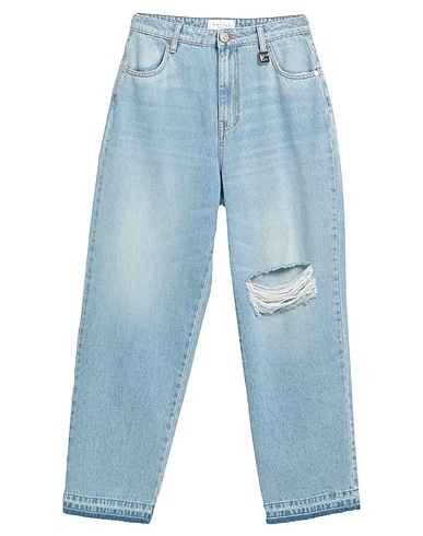 jeans gamba dritta, denim, tinta unita, brand logo, lavaggio chiaro, vita alta, regular fit, chiusura con zip, chiusura con bottoni, multitasche, lavare in lavatrice o a secco, non candeggiare, non asciugare in asciugatrice