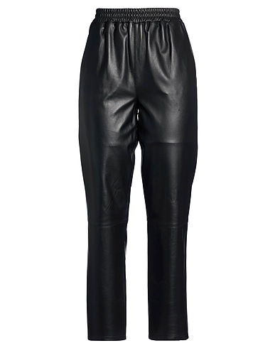 pantaloni gamba dritta, pelle, tinta unita, senza applicazioni, vita alta, vita con elastico, regular fit, interno parzialmente foderato, tasche a fessura, tasche a filetto, non lavare ad acqua, non candeggiare, non asciugare in asciugatrice, non stirare, contiene parti non tessili di origine animale
