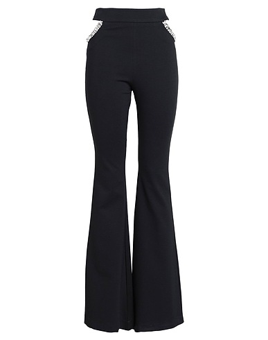pantaloni svasati, jersey, tessuto elasticizzato, tinta unita con applicazioni, cristalli, vita alta, regular fit, chiusura con zip, chiusura con gancetti, senza tasche, lavare a secco, non candeggiare, non asciugare in asciugatrice
