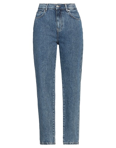 jeans mom, denim, brand logo, tinta unita, lavaggio medio, vita alta, regular fit, 1 bottone, chiusura con zip, senza tasche, lavare in lavatrice, non candeggiare, non asciugare in asciugatrice, questo brand veste piccolo
