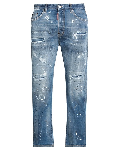jeans gamba dritta, denim, effetto delave, effetto consumato, tessuto elasticizzato, tie-dye, cristalli, lavaggio medio, vita alta, vita con passanti, regular fit, chiusura con bottoni, cinque tasche, lavare a mano o a secco, non candeggiare, non asciugare in asciugatrice, cropped