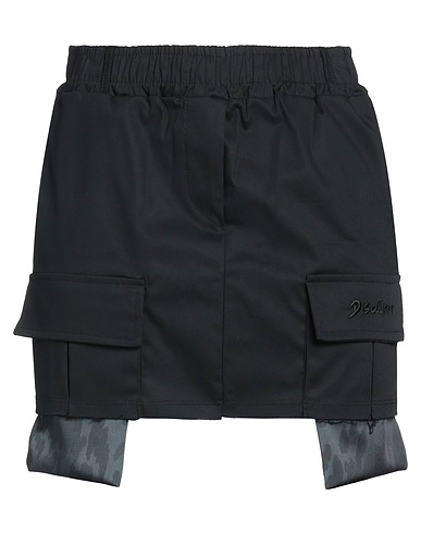 gonna svasata, twill, tinta unita con applicazioni, logo ricamato, fondo sfrangiato, multitasche, elasticizzato, lavare a mano, non candeggiare, non asciugare in asciugatrice, non stirare