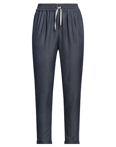 pantaloni affusolati, chambray, tinta unita, senza applicazioni, vita con elastico, slim fit, chiusura con coulisse, fondo con risvolto, multitasche, elasticizzato, lavare in lavatrice o a secco, non candeggiare, non asciugare in asciugatrice
