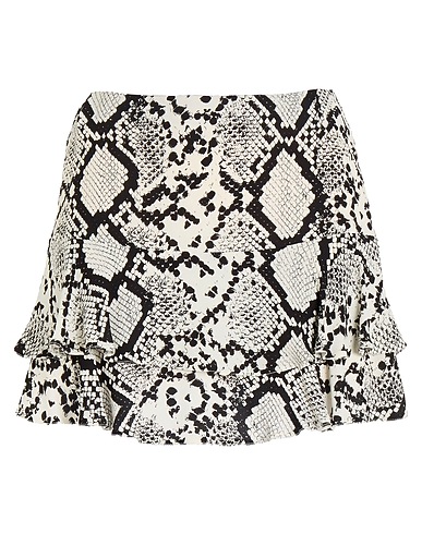 gonna con ruches, crêpe, stampa serpente, a balze, interno foderato, chiusura con gancetti, chiusura con zip, lavare a secco, non candeggiare, non asciugare in asciugatrice
