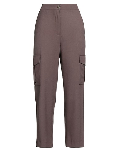 pantaloni cargo, tela, tinta unita, senza applicazioni, vita alta, vita con elastico, regular fit, 1 bottone, chiusura con zip, tasche a fessura, tasche con patta, elasticizzato, lavare a secco, non candeggiare, non asciugare in asciugatrice