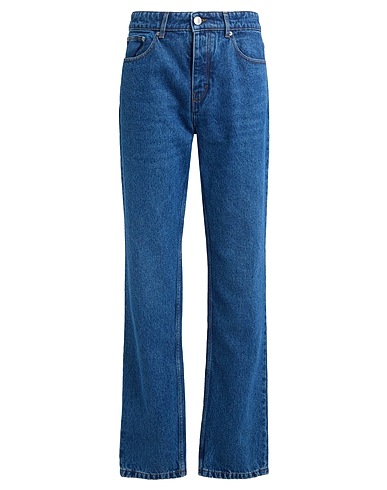 jeans affusolati, denim, tinta unita, brand logo, lavaggio medio, vita alta, vita con passanti, regular fit, 1 bottone, chiusura con zip, tasche, lavare in lavatrice, non candeggiare, non asciugare in asciugatrice, questo brand veste grande