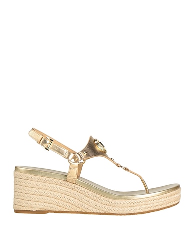 sandali espadrillas, pelle, metallizzato, tinta unita, brand logo, interno in pelle, cinturino alla caviglia con fibbia, punta tonda, tacco a zeppa, zeppa in corda, suola in gomma, contiene parti non tessili di origine animale, stile e comfort, ideali per le vacanze al mare e il relax a bordo piscina