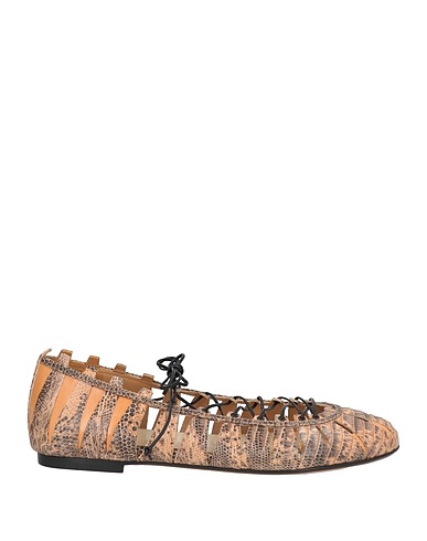 ballerine, pelle testurizzata, stampa lucertola, senza applicazioni, chiusura con lacci, punta tonda, senza tacco, suola in cuoio, interno in pelle, contiene parti non tessili di origine animale