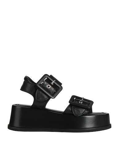 sandali ankle strap, pelle, tinta unita, senza applicazioni, interno foderato, chiusura con fibbia, punta tonda, tacco a zeppa, zeppa rivestita, suola in gomma, contiene parti non tessili di origine animale
