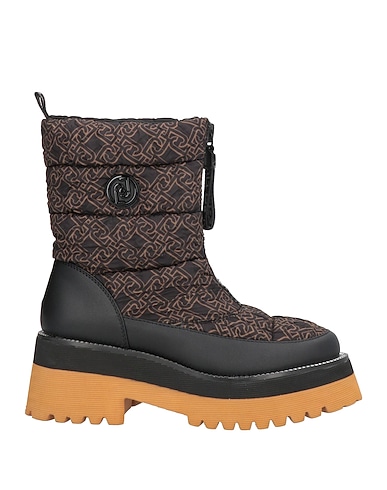 stivaletti imbottiti, tessuto tecnico, tessuto spalmato, trapuntato, fantasia logo, finiture in grosgrain, imbottitura sintetica, chiusura con zip, punta tonda, tacco squadrato, suola carrarmata