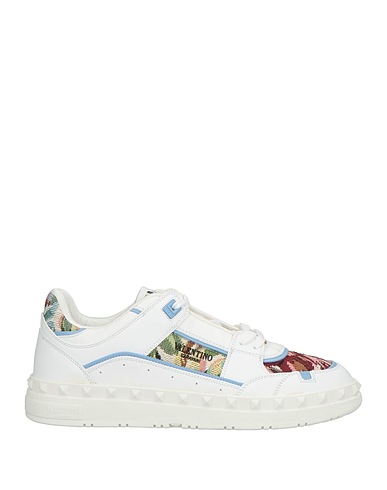 sneakers basse, pelle, jacquard, fantasia floreale, borchie, brand logo, interno in pelle, chiusura con lacci, punta tonda, suola in gomma con incisioni, contiene parti non tessili di origine animale, calzata ridotta