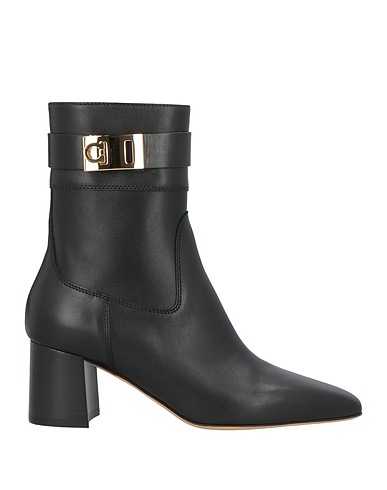 stivaletti, pelle, tinta unita con applicazioni, brand logo, cinturini, interno in pelle, chiusura con zip, punta stretta, tacco squadrato, suola in cuoio, contiene parti non tessili di origine animale