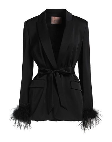 blazer monopetto, raso, tinta unita con applicazioni, piume, cintura, collo con revers, maniche lunghe, interno foderato, 1 bottone, tasca con patta, contiene parti non tessili di origine animale, lavare a secco, non candeggiare, non asciugare in asciugatrice, spicca con eleganza e glamour al tuo prossimo cocktail party o per una serata speciale