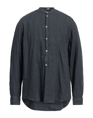 camicia regular, lino, tinta unita, brand logo, collo alla coreana, maniche lunghe, chiusura con bottoni, lavare in lavatrice o a secco, non candeggiare, non asciugare in asciugatrice, questo brand veste grande