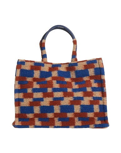 borsa shopper, flanella, fantasia geometrica, finiture in pelle, chiusura a calamita, interno foderato, doppio manico, tracolla removibile, modello large, contiene parti non tessili di origine animale