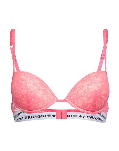 pizzo, brand logo, tinta unita con applicazioni, chiusura con gancetti, interno foderato, imbottitura removibile, reggiseno con ferretto, elasticizzato, push-up