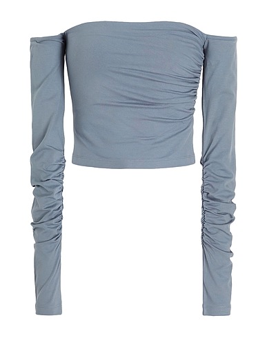 ジャージー素材 / ギャザー / 無地 / 長袖 / ストレッチ素材 / オフショルダートップス